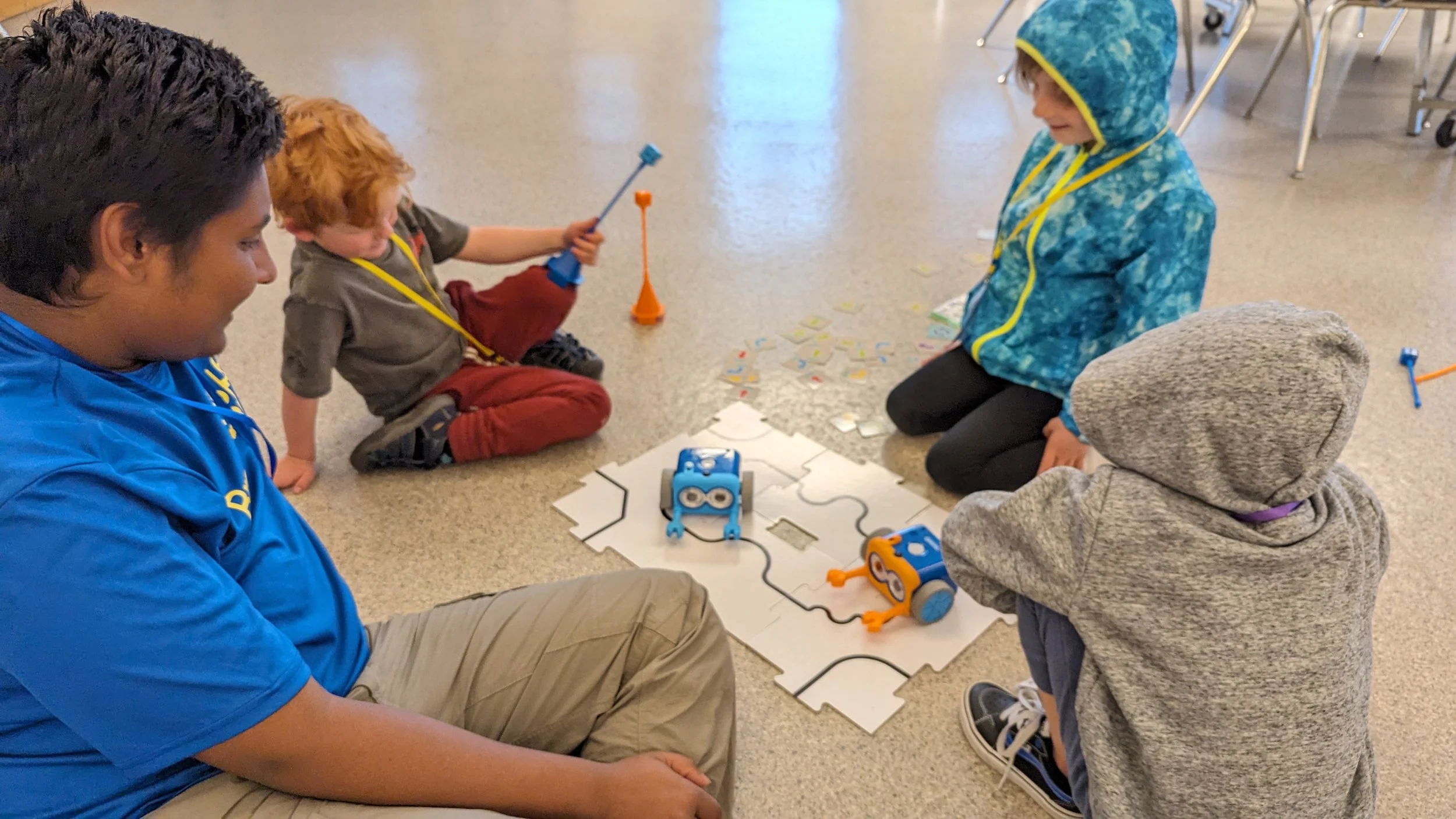 Discover Bots is our NEW robotics program for students in Kindergarten and 1st Grade for the 2026-2027 school year! The first step in the Broomfield Robotics pipeline, Discover Bots introduces students to a variety of different robots, tasks and screen-free coding opportunities, all through hands-on play, exploration, and challenges to solve.